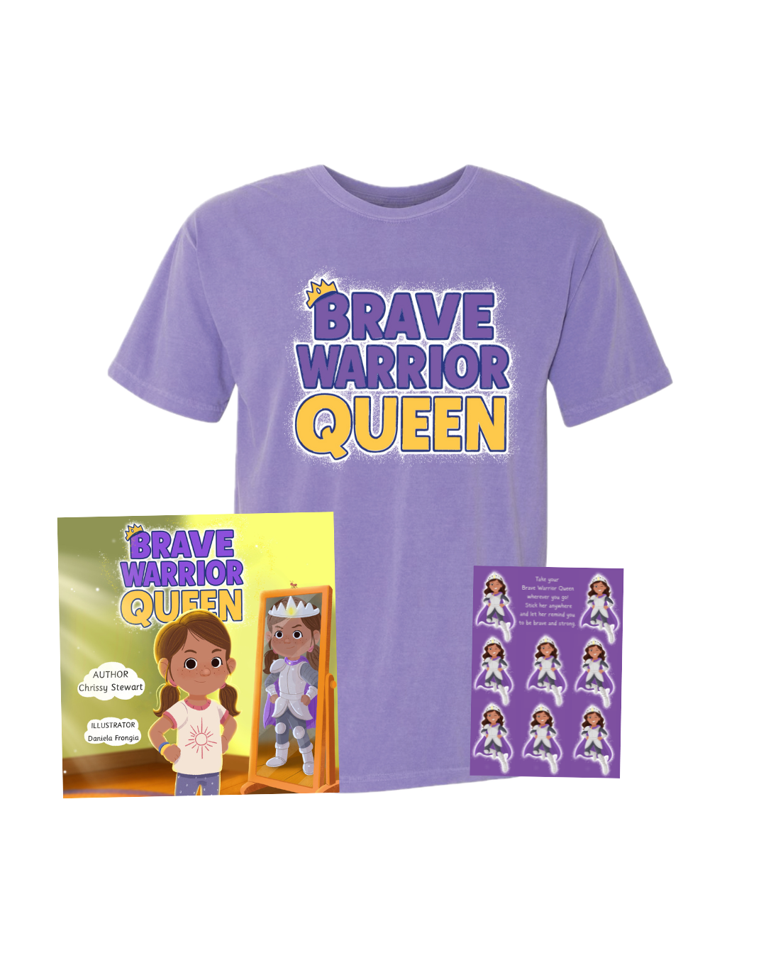 Get all three items – the “Brave Warrior Queen” children’s book, a super soft “Brave Warrior Queen” T-shirt, and a Brave Warrior Queen sticker sheet.